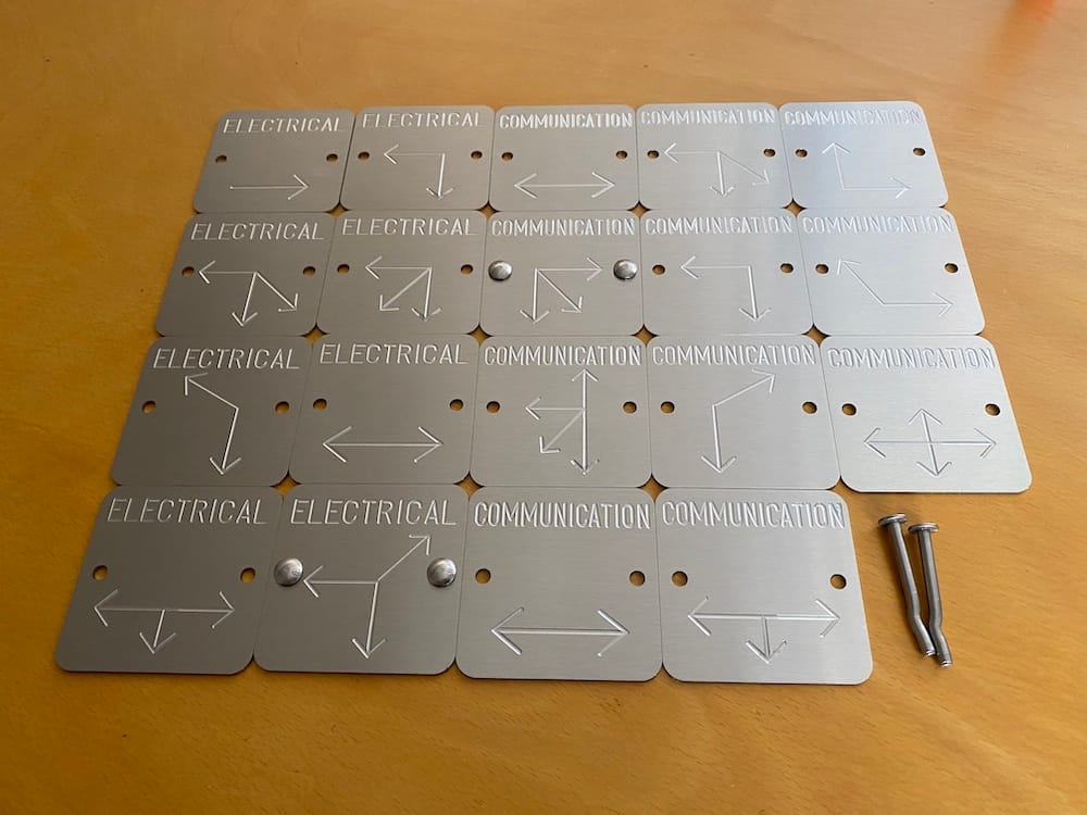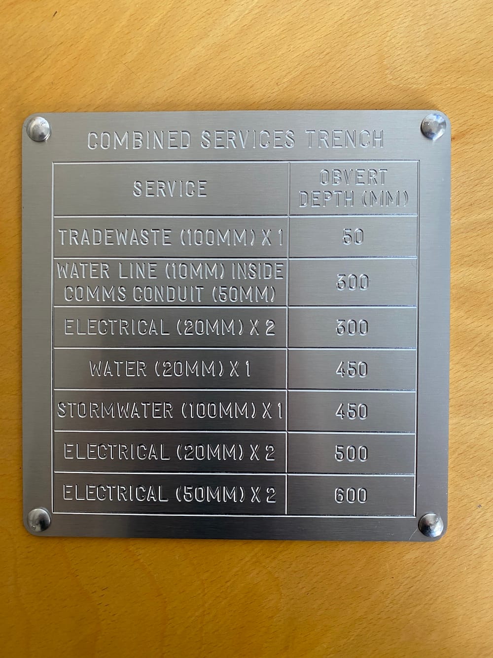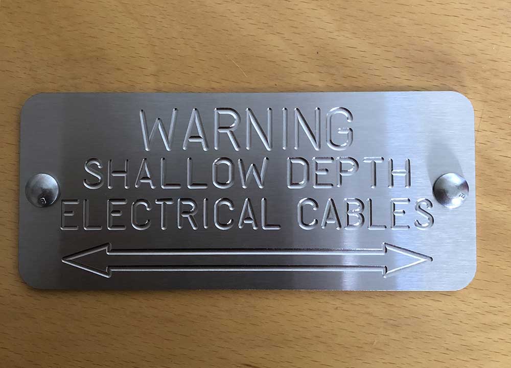 Back to GalleryStainless Plate GalleryBrowse our collection of high quality stainless steel plates. Browse Stainless Plate Range 100mm Diameter PSM Blank Stainless Steal Plate PSM Sample Stainless Steal Plate Custom Aarnet Stainless Steal Plate with Black Paint Fill QUU Logo Pit Stainless Steal Plates 200 x 200mm Paint Fill Danger Cables Above Stainless Steal Plate 975 x 75mm Danger HV Cable with Arrow Stainless Steal Plate 150 x 65mm Paint Fill Electrical Cable Reduced Cover Stainless Steal Plate Energex Electrical Cable Aluminium Plate Electric Cable with Arrow Aluminium Plates FH with Vinyl Stainless Steal Plates Gas Stainless Steal Plate H Stainless Steal Plates H Stainless Steal Plates H Stainless Steal Plate 75mm Diameter Danger Shallow Electrical Cables Stainless Steal Plate Marker Post Stainless Steal Plates Optus Yes Stainless Steal Plate Paint Fill Stainless Steal Plates 150 x 100mm Danger Electrical Cables Reduced Cover Dial Stainless Steal Plates SV Vinyl Stainless Steal Plate TPG Telecom Stainless Steal Plate Water Main and Gas Main Stainless Steal Plates Valve Name Stainless Steal Plate Stainless Steal Plates 150 x 75mm Environmental Storm Water Drain with Fish Stainless Steal Plate Danger Electric Cable and Arrow Stainless Steal Plages 150 x 65mm Custom Danger Reduced Cover Stainless Steal Plate 150 x 65mm Custom Stainless Steel Plates Warning Shallow Depth Electrical Cables Stainless Steal Plate 150 x 65m Paint Filled Stainless Steal Plate 300 x 250mm by 4mm Thick Custom Electrical Cables with Spice Double Arrow Stainless Steal Plate 150 x 100mm Vertical Black Paint Filled Custom Stainless Steal Plate Custom Mayor Stainless Steal Plates 60mm and 38mm Diameter Stainless Steal Plates 100mm Diameter Electrical Cables Danger with Directional Arrow Stainless Steal Plates 150 x 65mm Shallow Water Main with Down Arrow Stainless Steal Plate Electrical Cables Danger with Arrow Stainless Steal Plate 200 x 200mm Red Paint Filled Danger Electrical Cables Stainless Steal Plates with Arrow Stainless Steal Plates 75 x 75mm Custom Chilled Water Line Stainless Steal Plates 150 x 100mm Custom For Emergency Use Only Stainless Steal Plate 200 x 200mm Custom Danger Underground Cables with Arrow Stainless Steal Plate NBN Assortment Stainless Steal Plates No Caption No Caption No Caption No Caption No Caption No Caption No Caption No Caption Browse SelectionView our stainless steel, brass and reflective makers, tags and plates.View Now Request a QuoteFast, Reliable, Custom Kerb Marking Solutions Await!Start Now Get In TouchCall 07 3883 3386 or submit an enquiry today.Contact Us